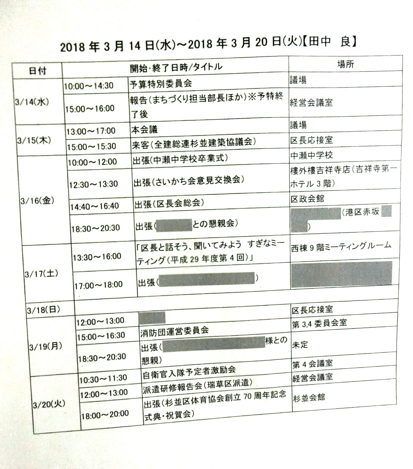 財務省決裁文書改竄や防衛省日報問題など、国政で、公文書・行政文書の信頼性・管理体制が問題になっているなか、東京都杉並区・田中良区長の日程表が、公文書としての管理がなされないまま「毎日廃棄」されている事実が発覚した。杉並区文書等管理規程に違反している疑いがあるが、あらためられる気配はない。